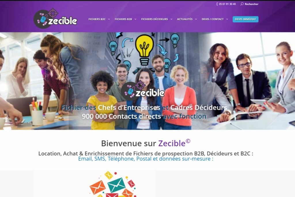 - Campagnes d’Emailing, SMS Mailing & Mailing Postales B2B et B2C associées aux fichiers Zecible pour une performance optimale de vos opérations Marketing